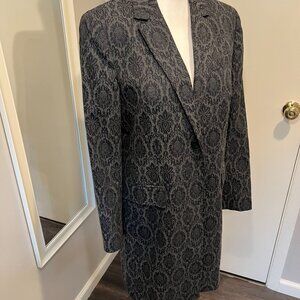 Jones NY Gray & Navy Jacquard Long Jacket/Dress Coat, Size 8