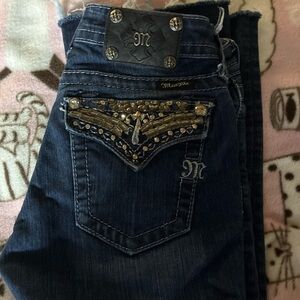 Chic Miss Me jeans with sparkling embellishments. Ideal for a stylish casual outfit.