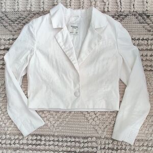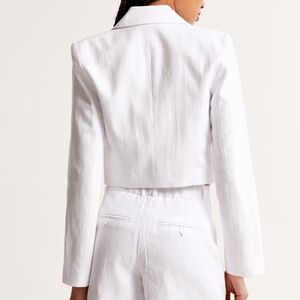 Abercrombie & Fitch Linen Blend Cropped Blazer In White Size Medium