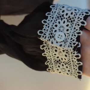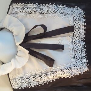 🖤🎀Black And White Ruffle Collar Bow&Lace Shein Blouse