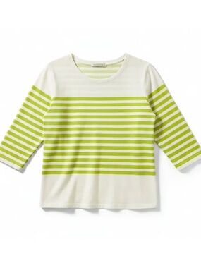 Joie Cotton Slub Stripe Top Chartreuse White 3/4 Sleeve Pullover L