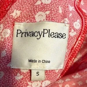 Long red maxi dress with floral design, high slit on the left, and lower back making it less moomoo and more date vibe. Made by Privacy Please and purchased from Revolve, size small, and worn a few times, great condition .