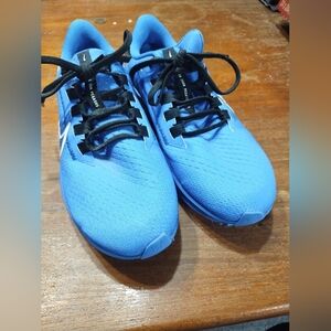 Nike Air Zoom Pegasus, blue, size 7.5 men's, size 9.5 women's. My daughter ordered them custom from Nike but didn't like them. She wore them once and they are in excellent, like new condition (maybe a bit dusty).