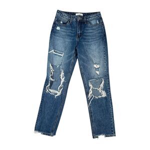 vervet blue jeans hart distressed mom jeans ripped medium wash straight leg 25