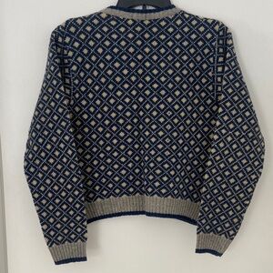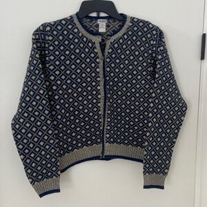 Vintage 100% Shetland Wool Blue and Cream Patterned Cardigan