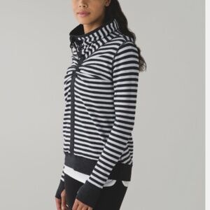 Lululemon In A Cinch Long Sleeve Tee Sz 8 Heathered Black/Super Wide Load Stripe