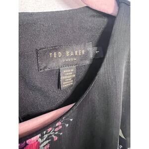 Ted Baker Midi Dress Size 1 Black With Floral Print Chic Classy