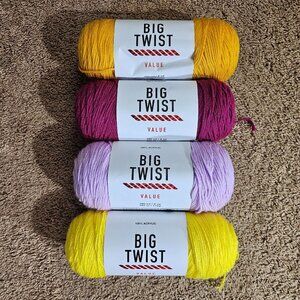 Lot of 4 Big Twist Value Yarn 380 Yds Each Varisty Gold/Yellow Plum Soft Purple