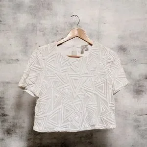 Forever 21 Ivory Geometric With Sequins Crop Top
