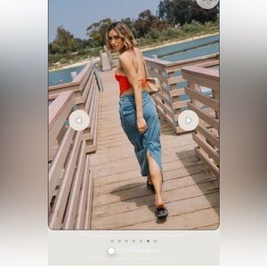Stylish blue denim maxi skirt. Perfect for casual outings.