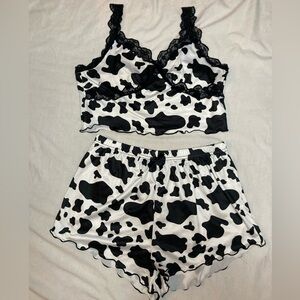 Black and White Cow Print Lace Trim Sleepwear Set Size XS (Tagged M)