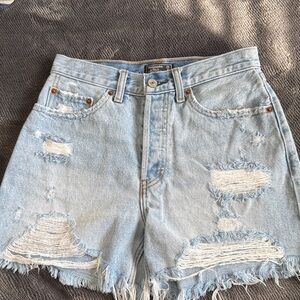 Abercrombie Light Wash Distressed High Rise 4” Denim Shorts Size 25