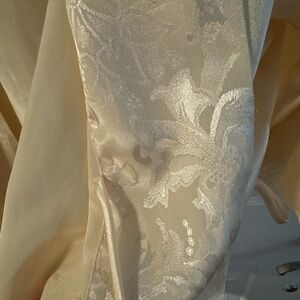 Chic cream satin like robe with elegant floral patterns. Perfect for a cozy night in. Vintage Victorias Secret Gold Label Cream Paisley Open Short Robe One Size Kimono. Tie is missing. Could be worn loose as a kimono over a dress or with a tank underneath. Many options for this vintage beauty!