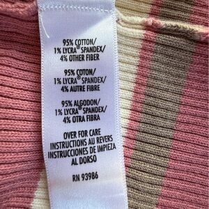Cozy vintage vibes meet classic stretch comfort in this Casual Corner striped ribbed turtleneck sweater. Featuring a soft, stretchy cotton-blend knit in mauve, cream, and olive stripes. it’s perfect for layering or wearing solo through the cooler months. The slim-fit silhouette and ribbed texture create a flattering, timeless look.