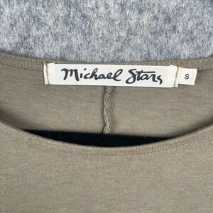Michael Stars Olive Green Long Sleeve Wrap Tie Tee Dress size small in gently preowned conditions see pictures for more details and measurements.