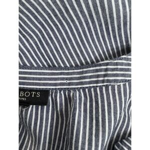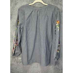 Talbots Womens Top Gray White Striped Floral Embroidered V-Neck Boho 1X Petite