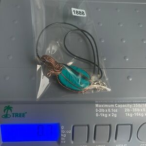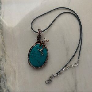 Discover the beauty of this artisan turquoise pendant, elegantly wrapped in copper wire. Perfect for adding a touch of color to any ensemble.