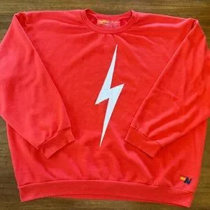 Aviator Nation Red Crewneck with White Lightning Bolt Size XL