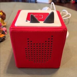 Engage your child with this vibrant red Tonies box featuring beloved characters. Perfect for imaginative play and storytelling. All figures work and some have more wear on the exterior than others. There are pictures of the ones that have more wear on the outside.