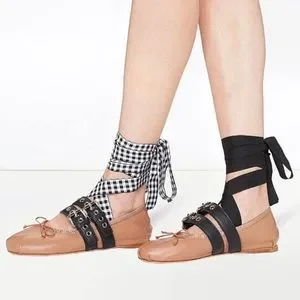 Miu Miu Balletcore Tie Up Belted Leather Ballerina Flats
