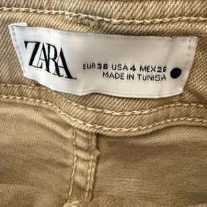 ZARA The Marine Straight Tan Cropped Jeans Size 4 Wide Leg Distressed