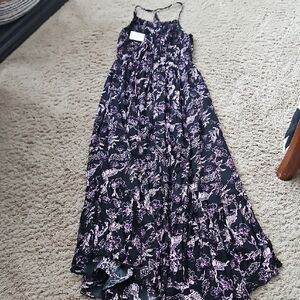 Free People Heat Wave Floral Print High/Low Dress in Dark Night Combo