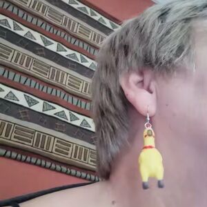 Charming chicken earrings in bright yellow. Fun and unique design. Perfect for adding whimsy to any outfit.