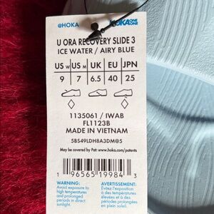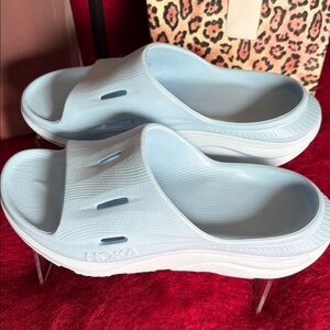 HOKA ORA RECOVERY SLIDE 3 ICE WARTER/ AIRY BLUE RUBBER SLIDES UNISEX W9/M7 NWT