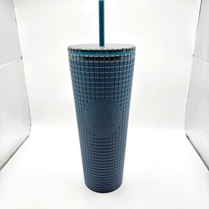 Starbucks 2023 Winter Navy Blue Soft Touch Grid Matte Cold Venti 24oz Tumbler