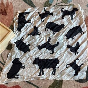 Single medium scarf // black white high contrast farm animal // has some typical wear visible when held into the light
