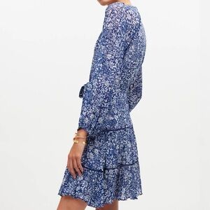 Madewell women's Tie-Waist Tiered Mini Dress in Floral Blue Ditsy 0