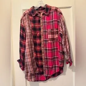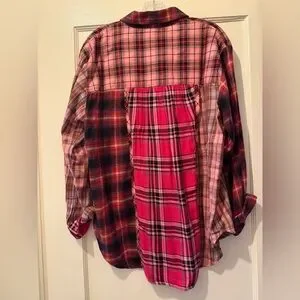 Pilcro Pink and Brown Plaid Button Down Flannel Shirt
