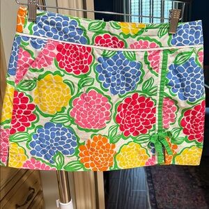 Lily Pulitzer Bright skort with bold floral design. Features pink, orange, green, and blue hues. EUC, 15” hip to hip & 13” hip to hem.