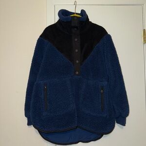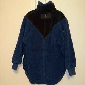 Perfect for warming up or throwing on post-workout, this cozy pullover is featured in a classic quarter-zip silhouette with added button closures and bicolor teddy fabrication for effortless comfort.