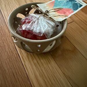 Handmade Ceramic Candle Holder and Rose Beeswax Candle Set Nepal World Col NWT