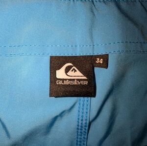 Quiksilver surf shorts in aqua. Includes side pocket and drawstring.