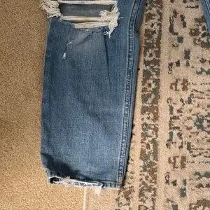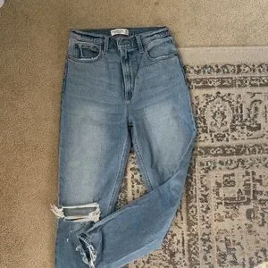 Chic high rise jeans with a distressed look. Perfect for casual outings. Comfortable and stylish.