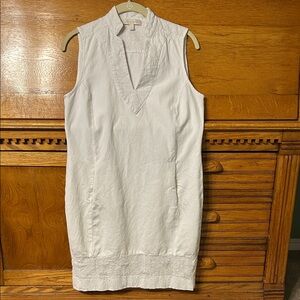 Etcetera White Sleeveless Textured Neckline & Hem Sheath Dress Summer Classy