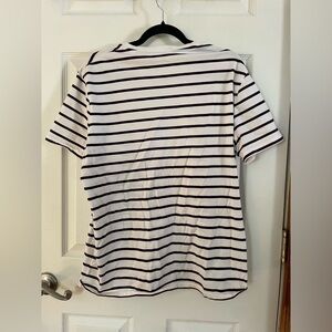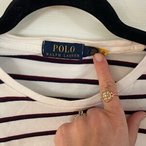Classic striped tee by Ralph Lauren. Features black stripes on white. Iconic logo on chest. Perfect for casual wear, 💯 cotton. No stains, tears or rips.