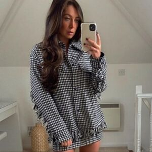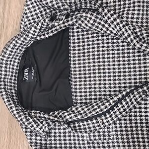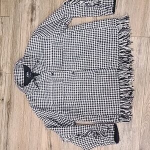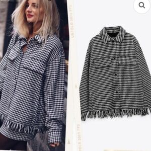 EUC Zara Black-White Houndstooth Shacket, Fringe Detail. Heavyweight