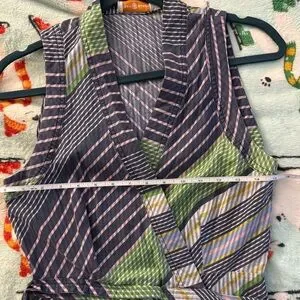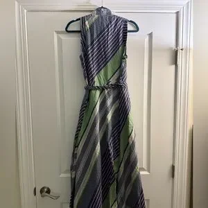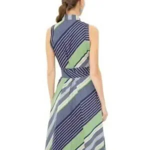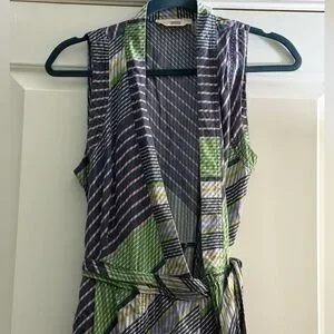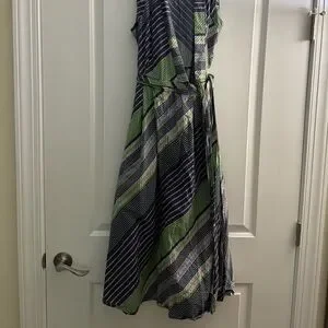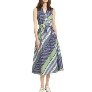 Tory Burch Overprinted Wrap Sleeveless Midi Dress Blue Green 6
