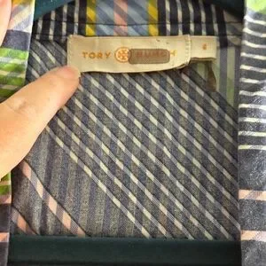 Tory Burch Overprinted Wrap Dress in Field Day Bias Stripe (Striped Plaid Print)