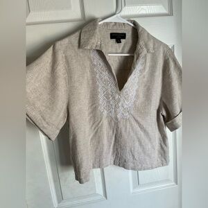 Banana Republic Women's Cropped Linen Embroidered Top