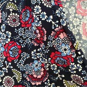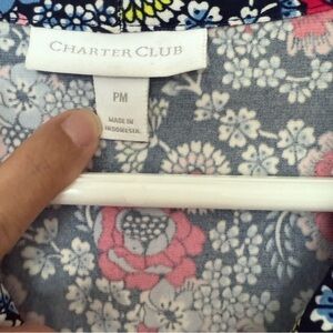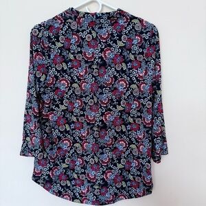 Charter Club Navy Blue Multicolor Floral 3/4 Sleeve V-Neck Blouse size Petite M
