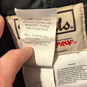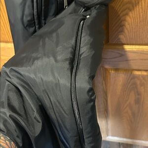 X-Large Tall, insulated snow bibs. Zippers up the pant legs. Stirrups at feet. Zipper pocket on front. Adjustable straps. Main zipper closure in front. Excellent condition!