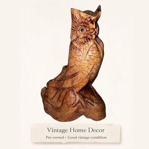 With expressive eyes and textured feather details, this piece makes a wonderful accent for cabin decor, bookshelves, nature-inspired spaces, or vintage collections.