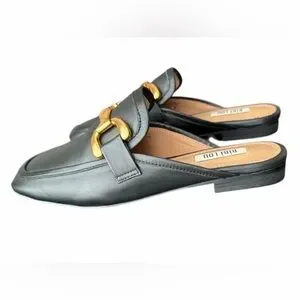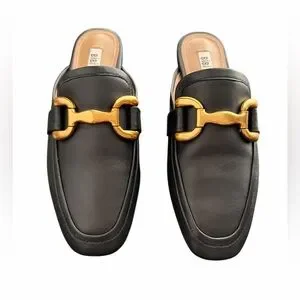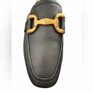 Bibi Lou Black Mule Loafers Gold Bit Detail Size 37 New