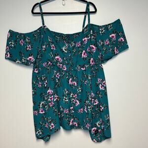 NWT Torrid Cold Shoulder Y2K Fairy Romantic Teal Green Floral Babydoll Top Sz 5X
