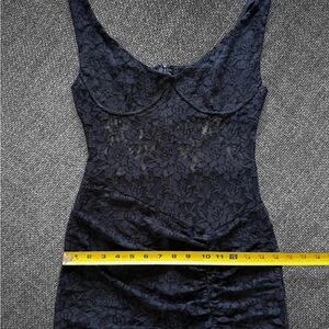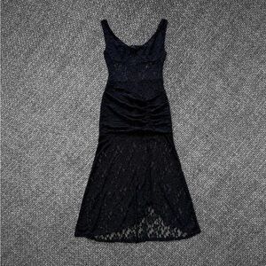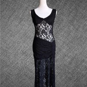 Turn heads in this stunning black lace dress featuring a deep V-shaped open back and intricate floral lace detailing. The fitted silhouette hugs your curves while the sheer skirt adds a touch of drama and elegance. Perfect for special occasions, evening events, or artistic performances, this piece blends classic glamour with modern edge. Lightweight and breathable, it’s designed to move with you and make a statement from every angle.