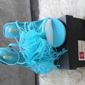 Liliana Turquoise Feathered Women's Sandals Sz 9